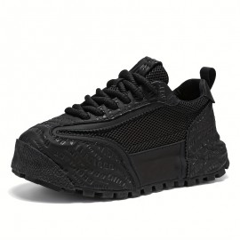 メンズ プラスサイズ トレンディ スニーカー - ブラック&ブルーのカジュアル ランニングシューズ、厚手のPVCソール付き、滑り止めロートップ レースアップデザインでカジュアルアットワイア&アウトドア活動に最適、アウトドアスニーカー | トレンディなメンズフットウェア | おしゃれなパターンのアクセント