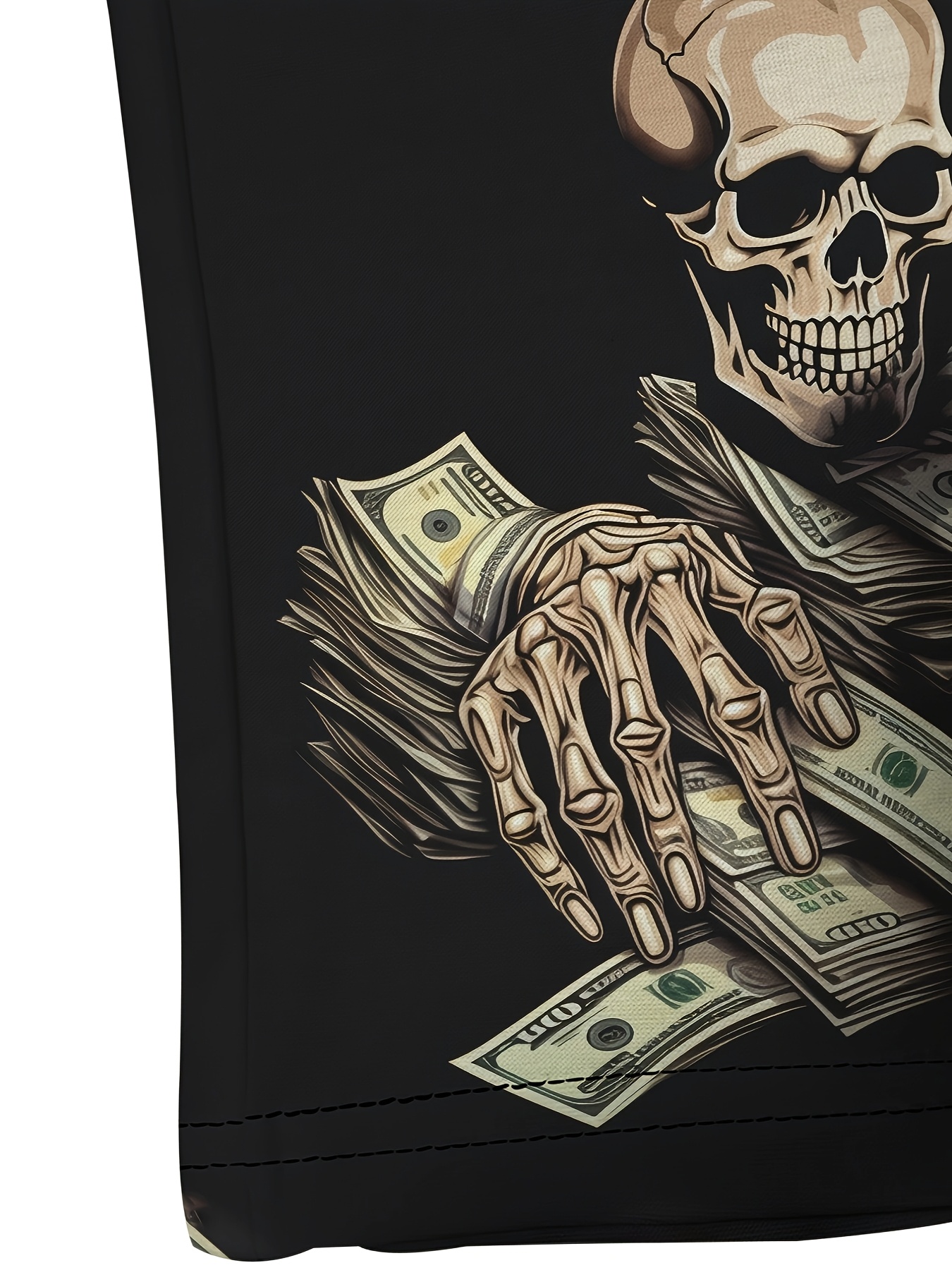 【耐久性のある構造】メンズ3DスカルとマネープリントTシャツ - ブラックポリエステル、半袖クルーネック、カジュアルな夏のアウトドアウェア